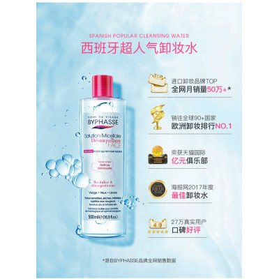 【中国仓】【中国发货】byphasse蓓昂丝卸妆水脸部温和清洁眼唇脸三合一液油500ml(2只装)