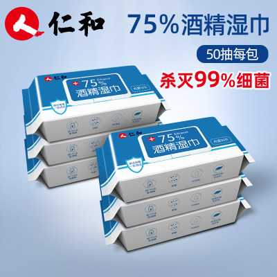 【中国仓】【中国发货】仁和 75%酒精湿巾有效清洁细菌 50片/包22-02