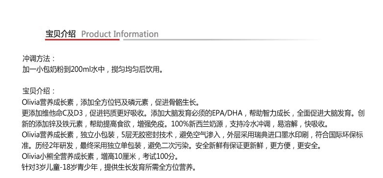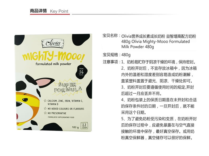 【新西兰仓】Olivia 儿童营养粉小熊奶粉 3岁以上 成长奶粉 480g