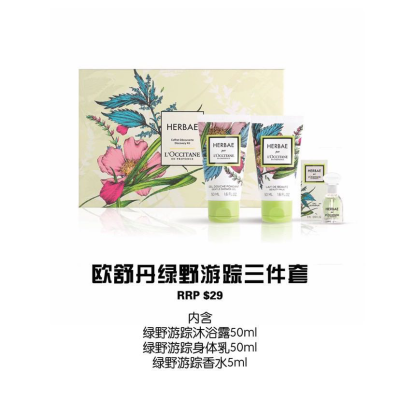 【澳洲仓】欧舒丹绿野游踪三件套(沐浴露50ml+身体乳50ml+香水5ml)