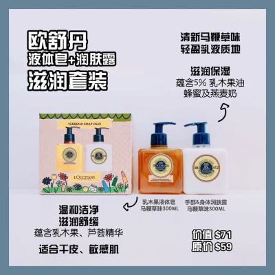 【澳洲仓】欧舒丹液体皂+润肤露套装(乳木果液体皂马鞭草味300ml+身体润肤露马鞭草味300ml)