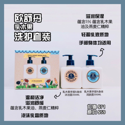 【澳洲仓】欧舒丹乳木果洗护套装(乳木果沐浴露300ml+乳木果身体润肤露300ml)