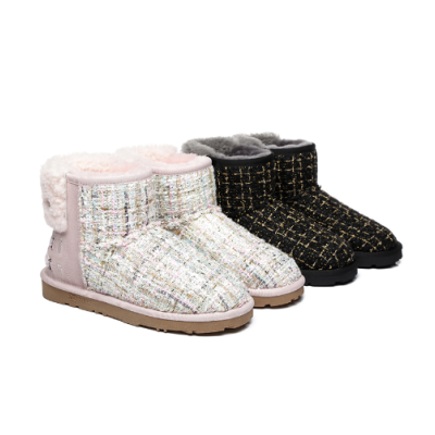 【中国仓】EVERAU EA3007 秋冬新款花呢布+牛绒小香风雪地靴