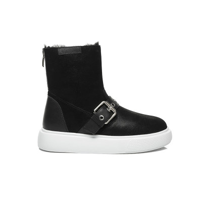 【中国仓】EVERAU EA3038 秋冬新款黑色水晶羊皮+黑色牛皮心锁雪地靴