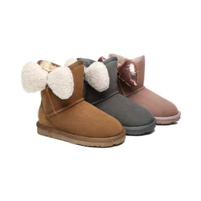 【中国仓】EVERAU EA3025K 秋冬新款皮毛一体蝴蝶结大耳朵亲子款儿童鞋