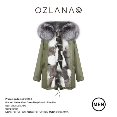 【中国仓】【OZLANA 皮草大衣派克服】AU212036-1 男款军绿色+经典银狐狸毛