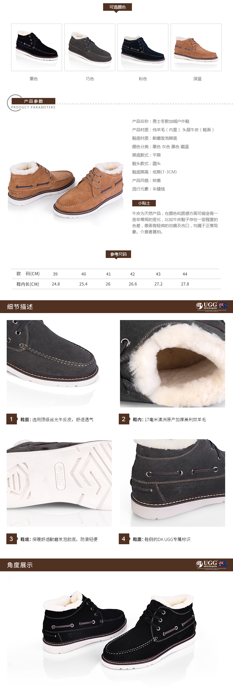 【澳洲仓】DK UGG DK501 男士冬款加绒户外鞋 小贝鞋