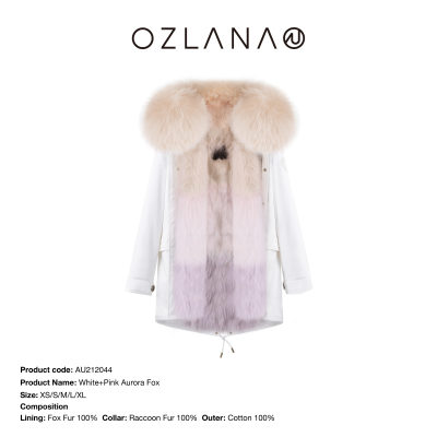 【中国仓】【OZLANA 皮草大衣派克服】AU212044 白色+粉色极光狐狸毛