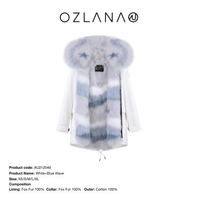 【中国仓】【OZLANA 皮草大衣派克服】AU212049 白色+蓝色波浪狐狸毛
