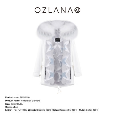 【中国仓】【OZLANA 皮草大衣派克服】AU212050 白色+蓝色宝石狐狸毛