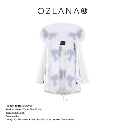 【中国仓】【OZLANA 皮草大衣派克服】AU212051 白色+蓝色蝴蝶结狐狸毛