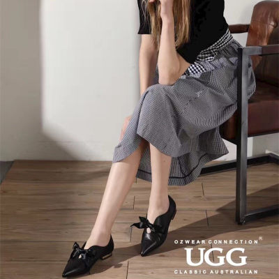 【澳洲仓】OZWEAR UGG OB305 春夏 小牛皮丝带蝴蝶结/金属单扣 女士尖头单鞋