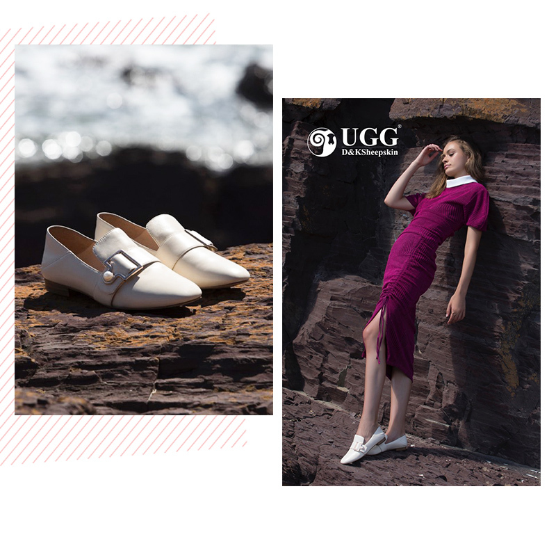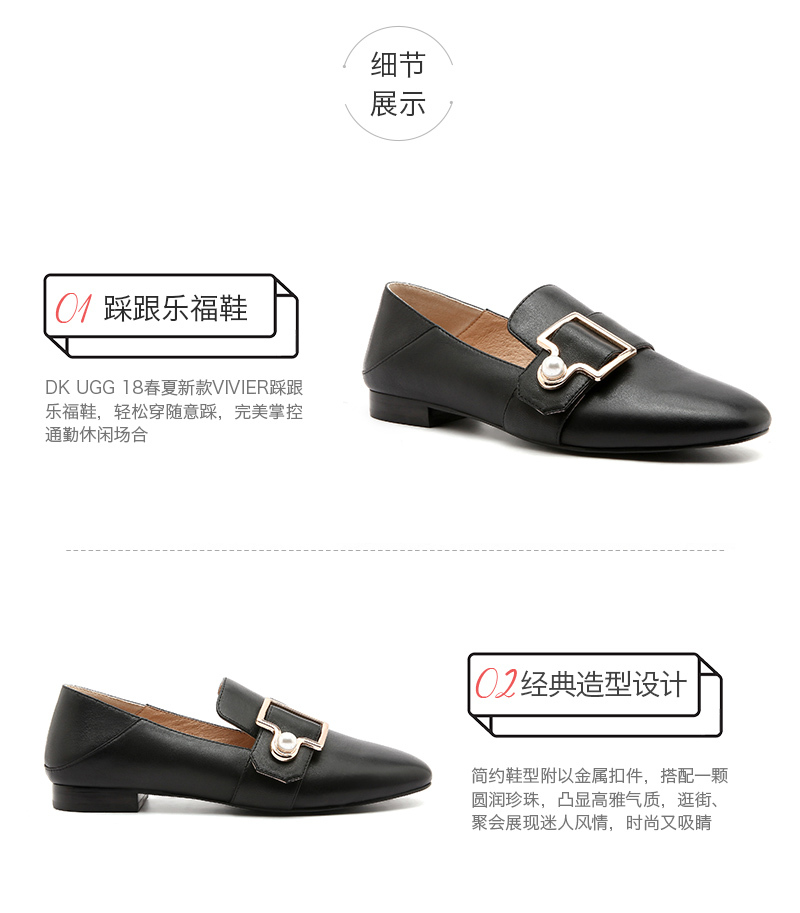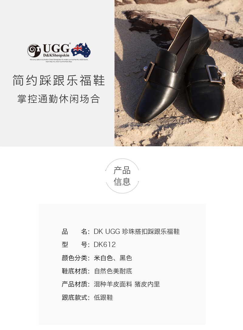 【澳洲仓】【特价】DK UGG DK612 VIVIER 春夏 小羊皮 简约珍珠搭扣踩跟乐福鞋