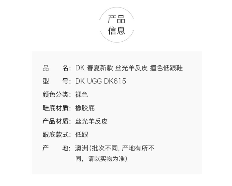 【澳洲仓】【特价】DK UGG DK615 春夏 丝光羊反皮 撞色低跟鞋