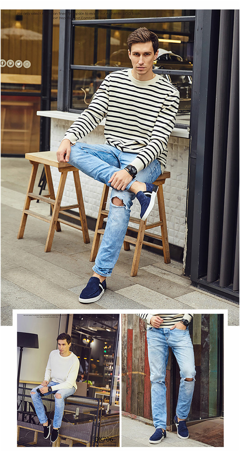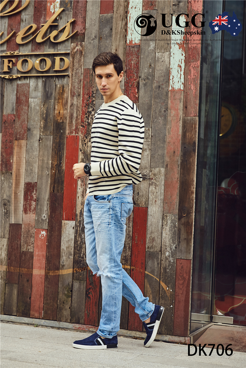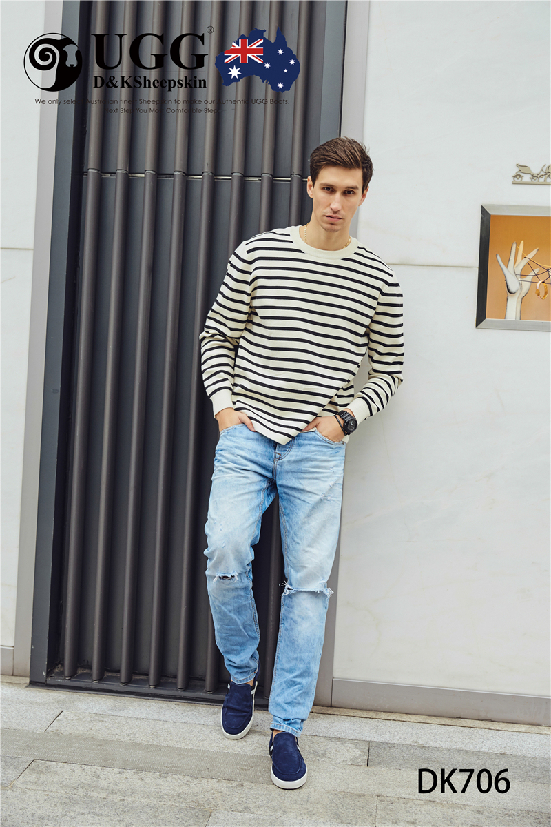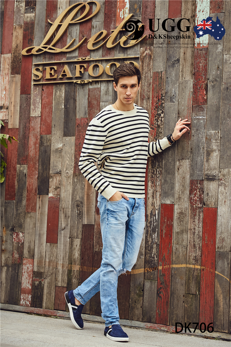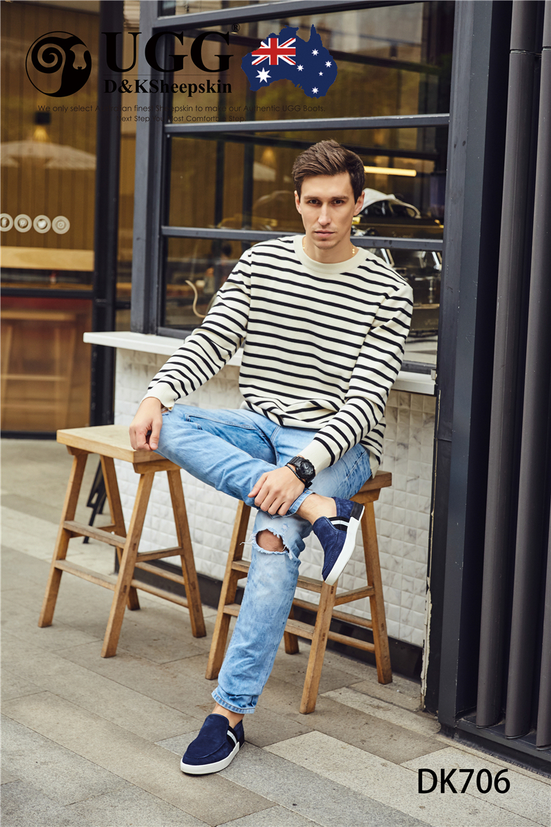 【澳洲仓】DK UGG DK706 Rex 春夏 牛反皮 简约条纹一脚蹬男士乐福鞋