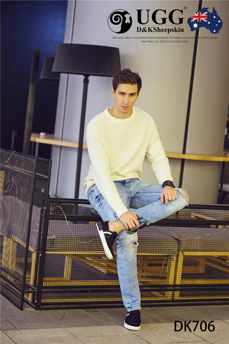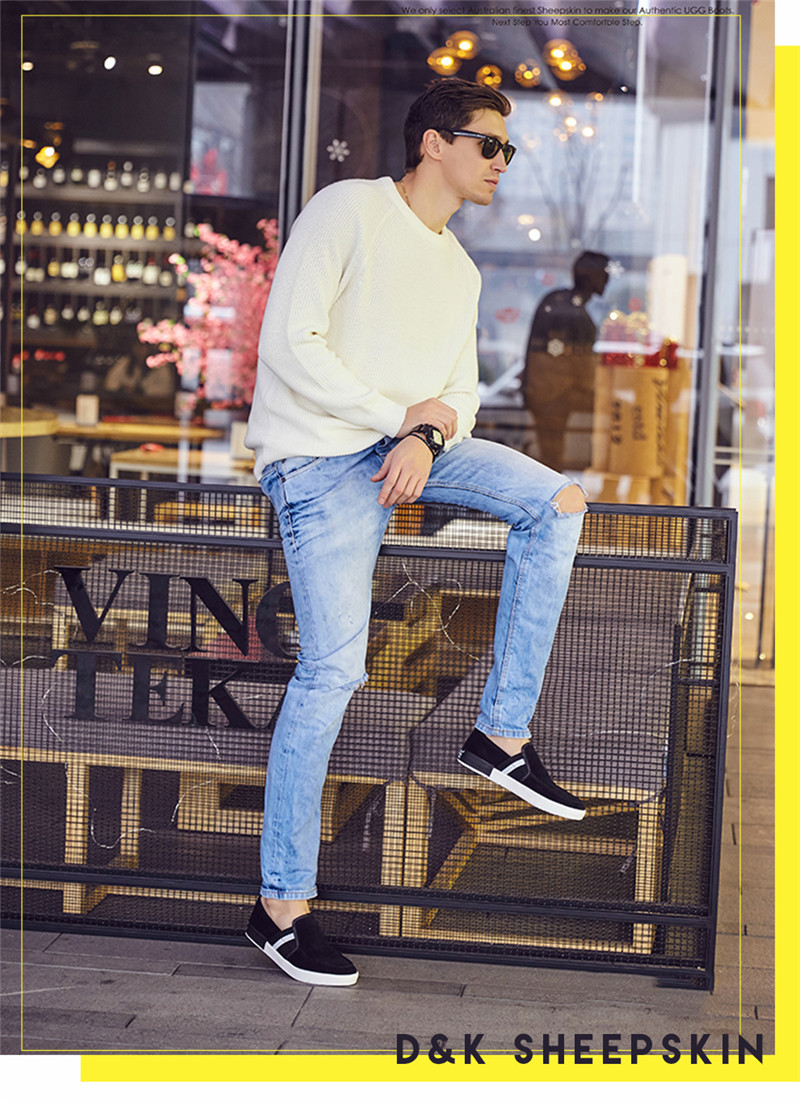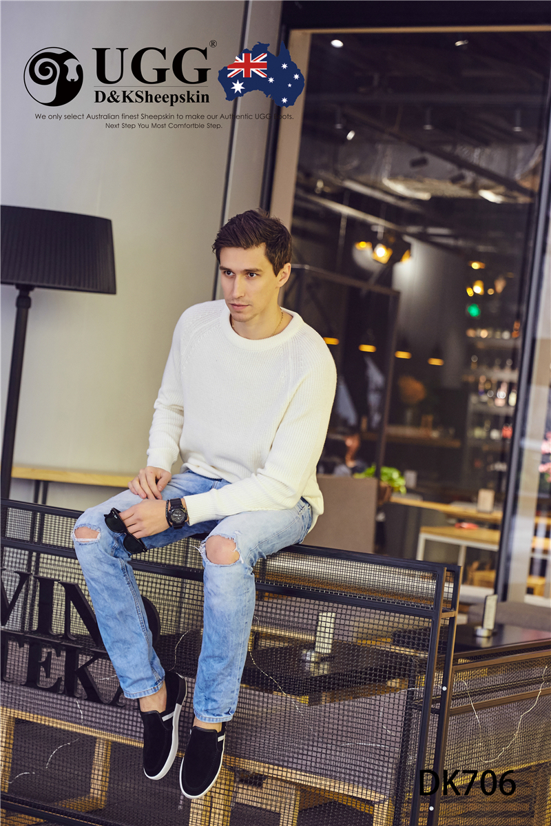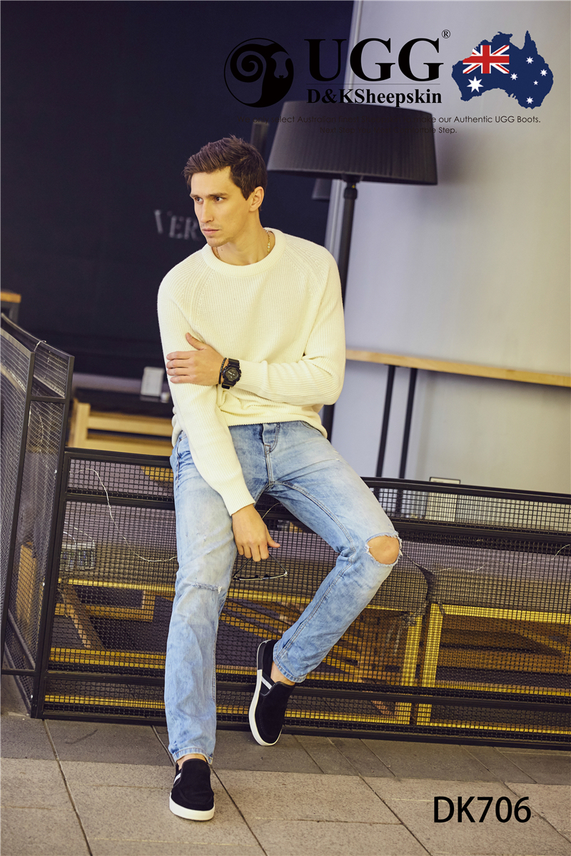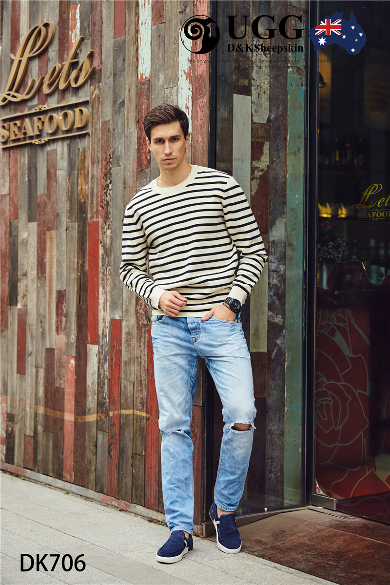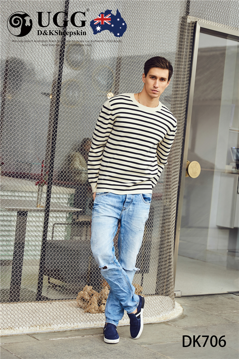 【澳洲仓】DK UGG DK706 Rex 春夏 牛反皮 简约条纹一脚蹬男士乐福鞋