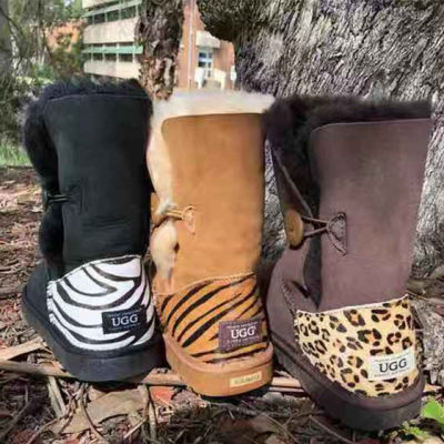 【澳洲仓】【任意两双65刀】OZWEAR UGG OB013Z/T/L UGG BUTTON BOOTS 后跟斑马纹雪地靴(下单联系客服改价)