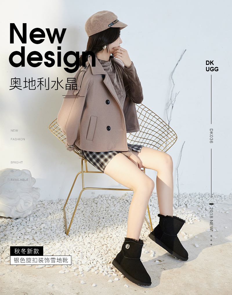 【澳洲仓】DK UGG DK036 秋冬新款 奥地利水晶 银色旋扣装饰雪地靴