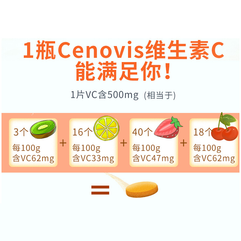 【中国仓】【上海保税】Cenovis圣维诺成人维生素C咀嚼片维C300粒