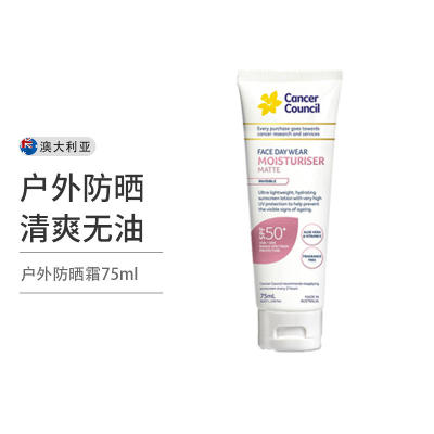 【澳洲仓】Cancer Council 澳美皙茜茜尔 面部保湿防晒乳SPF50+ 隐形哑光 75ml(粉色包装 普通效果)FDW