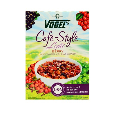 VOGEL'S Cafe-Style Light Berry is a light and crunchy muesli-style cereal with the rich fruity taste of blackcurrant and made from a recipe that uses no wheat or gluten.