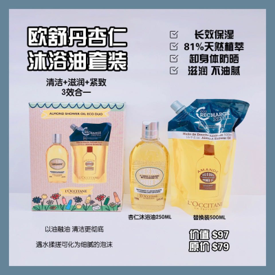 【澳洲仓】欧舒丹杏仁沐浴油套装(杏仁沐浴油250ml+替换装500ml)
