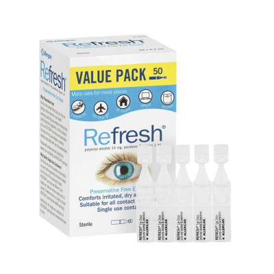 【澳洲仓】Refresh 眼药水人工泪滴眼液 缓解干涩疲劳无防腐剂 独立小包装 0.4ML x50支