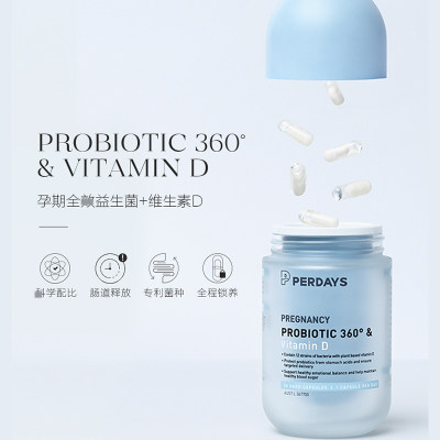 【中国仓】【上海保税】Perdays孕妇孕期全效益生菌维生素D30粒新专利技术双胶囊肠溶
