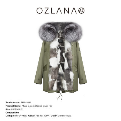 【中国仓】【OZLANA 皮草大衣派克服】AU212036 军绿色+经典银狐狸毛