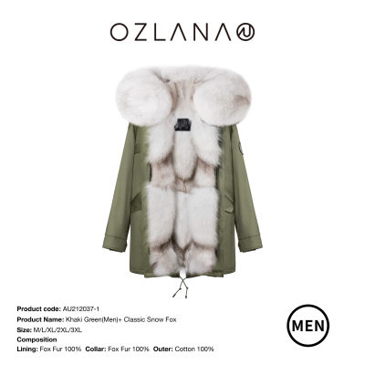 【中国仓】【OZLANA 皮草大衣派克服】AU212037-1 男款军绿色+经典雪狐狐狸毛