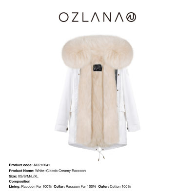 【中国仓】【OZLANA 皮草大衣派克服】AU212041 白色+经典奶茶色貉毛