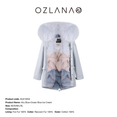 【中国仓】【OZLANA 皮草大衣派克服】AU212054 雾霾蓝+海洋蓝冰淇淋狐狸毛