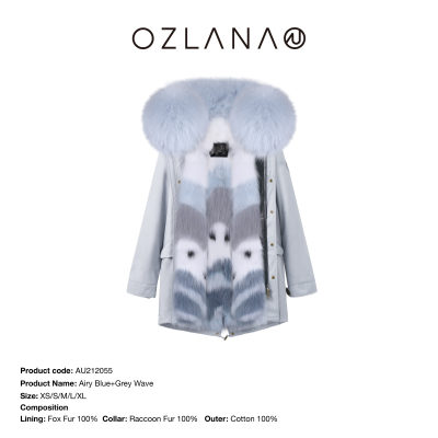 【中国仓】【OZLANA 皮草大衣派克服】AU212055 雾霾蓝+灰色波浪狐狸毛