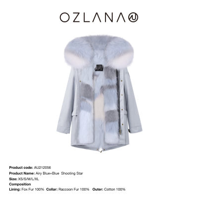 【中国仓】【OZLANA 皮草大衣派克服】AU212056 雾霾蓝+蓝色流星狐狸毛