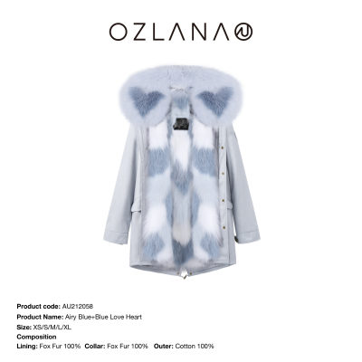 【中国仓】【OZLANA 皮草大衣派克服】AU212058 雾霾蓝+蓝色爱心狐狸毛