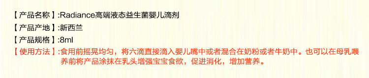 【新西兰仓】radiance 高端液态宝宝婴儿益生菌剂 8ml